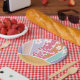 Nine is a Vibe Retro Sunshine Rainbow Daisy inspired 9th birthday plates.