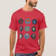 Monsters are cool! This shirt features nine famous monsters from Japanese mythology! These are: the oni, karakasa-obake (umbrella ghost), yurei (ghost), hitotsume-kozo (one-eyed kid), kappa, chochin-obake (lantern ghost), nurikabe (wall monster), nurarihyon, and the tengu! Each is drawn in a cute, cartoon style over a pink circle backdrop. Show off your love of monsters with this great yokai shirt!