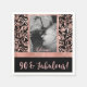 Chic, elegant, rose gold black damask | 90th Birthday photo napkin. Ninety and Fabulous! A beautiful modern, elegant faux pink gold foil floral leaves damask design 90th Birthday Party napkin you can personalise and send out your ninetieth birthday party celebration. Replace the sample vertical photo with your own. The words "90 and Fabulous" are set using popular hand lettered typhography. This birthday party napkin template you can customise with your own details and age. Pretty feminime template for 15th, Sweet 16, Quinceanera, 18th, 20th, 21st, 30th, 40th, 50th, 60th, 70th, 80th, 90th, 100th, or any year for Fabulous girls and womens. Please note, this design is a printed photo effect with no real elements and gold. #3332d