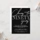 Celebrate in style with this modern elegant Ninetieth Birthday Party Invitation, perfect for marking a milestone in a chic, timeless way. The design features a large “NINETY” in light grey serif font at the top, with white script fonts above and below reading “Cheers To Ninety Years!” for a stylish, celebratory look.