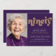 Ninety Elegant 90th Birthday Party Invitation. Step into the spotlight and celebrate your milestone birthday in grandeur with our Elegant Purple and Gold Collection, featuring a touch of personalisation with Custom Photo options. Adorned in regal purple and shimmering gold, our collection offers simple yet sophisticated decor to elevate your special day. Let the elegance of purple and gold set the stage for an unforgettable milestone event, where simplicity meets sophistication. Make your milestone birthday truly remarkable with our Elegant Purple and Gold Collection, designed to capture the essence of your special day.