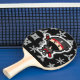 Overall, it's a nice product but for what you pay the quality isn't very good. The way it's glued together, as you can see in the pictures, is messy, the glue is visible and shiny, there's some ink staining that looks like black fluff but isn't, it won't come off. On the paddle's black surface there are also little white marks here and there. It's not too easy to show in the pictures because of the flash but I tried to showcase the little white blemishes that ruin a smooth black surface. This was meant to be a gift and it just looks sloppily put together unfortunately. A few imperfections that mar what could have been really great. The printing was neat.