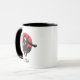 This mug features a bold ninja graphic: a crouching silhouette with shurikens in hand, twin swords on the back, and a white mask for contrast. Set against a red sun circle, the design blends traditional Japanese iconography with modern minimalism. The word “NINJA” anchors the composition in strong, black lettering — perfect for martial arts fans or lovers of stealth aesthetics