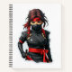 Cool Ninja Girl Action Figure in black and red costume with a mask transparent background Graphic vector