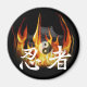 Cool and unique combination of Japanese Kanji for “Ninja” with a temple behind and the Yin Yang symbol in a burning fire.