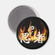 Unique combination of Japanese Kanji for “Ninja” and the Yin Yang symbol in the fire.