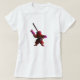 Ninja in camouflage red attacking with shuriken (throwing star) and staff.