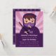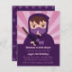 Espionage, infiltration and training, are the kids ready for the way of the ninja? Plan a ninja birthday party which is unique and fun starting with this ninja theme invitation! It features a ninja boy in purple outfit in a pose with a katana sword on his back. A starburst background. A shuriken ninja star pattern for background on the reverse page. Personalise easily with your party details.