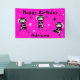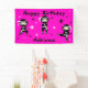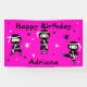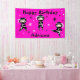 Create a memorable and fun birthday celebration for the cute ninja kid in your life. This easily customisable birthday party banner is part of a matching set of birthday party accessories. You can host the best ninja themed birthday party for your little martial arts enthusiast. Just add your own details to customise, and don’t forget about party plates, cups, napkins, and all the essentials. This design features some cute little ninjas in black and white with a hot pink background.