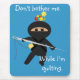 You don't have a little ninja to fight off all who interrupt your sewing time? Well you need to get one! A humourous depiction of a serious quilter's need for peace. This little ninja will fight for your right to sew. Use the customise button to change the text, style or background colour. Customise to your needs. Original design by Rebecca of Night Owl's Menagerie, copyright 2011.