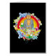 Meditating Buddha peacefully sits among a colourful array of stars, rainbows, flowers and Yin Yang symbols! An explosion of colourful and mindfulness! Eye catching Buddha gifts!