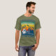 I give wanted to give this a 4 instead of a 5 because these Basic DARK T0shirts run unexpectedly SLIM or Narrow. Which is great if you do not have a potbelly, but I have a paunch. It isn't the shirt's fault that I've got a beer belly. The design and shirt itself is a quality cotton shirt. The color is more of a deep purple, but still a very pretty color. The Basic DARK T-shirts run a bit SLIMMER than the Basic Ts. The neck is a fraction narrower (or seems to be narrower) also. I'm a paunchy middle-aged woman and my neck is 12 inches (31cm) thick and the neckline fell about the same as in the photo of the man, and I had the desire to tug it a bit. So if you're a thick necked man or like loose shirts, be aware these are slimmer shirts. Once I get rid of my lockdown paunch it'll look great. The shirt washed well in cold water with no apparent bleeding. We don't have a dryer, so it hung dry. Did not shrink. Love the colors and the design. The design looks smaller on my shirt than it does on the model on-line. But still, it looks good on the shirt. The printing looks as it does on the model, just the size seems fractionally smaller. Washed garment in cold water, hung dry and design appeared unaffected.