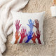 Vibrant, colourful hands reach upwards, overlapping in shades ranging from red to blue. The arrangement creates a dynamic sense of movement and unity.
