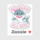 A cute and girly shark sticker with the text "no bark all bite". The shark has big eyes and is wearing a pink bow. The background is light blue with bubbles.