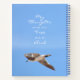 A Seagull in flight flying across a clear blue sky with just a whisper of a white cloud on this beautiful notebook with an inspirational and motivational quote by William Blake "No bird soars too high if he soars with his own wings." Feel free as this seabird to journal your thoughts and ideas and personalise this coastal photographic notebook with your Name or you own text on the front and back of this sky blue notebook its unique photographs of gulls flying.