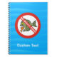 Forbidden sign over angry fish bullying a little one. Custom text.