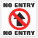 Entry not allowed sign stickers. Square no entry sign icon with a black arrow up with a red not allowed stripe and red round border sticker sheet with fully customisable texts "No entry" and "No entry" square small stickers. This ahead/ entry prohibited warning item is fully customisable, add your personal texts and images.