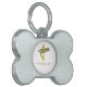 I bought this tag to go on my deceased dog Arinna's casket which contains her ashes. I could not be happier with it. It has provided the finishing touches to her casket which is in the shape of a German Shepherd. This dog tag is on a small collar around the neck of the casket. Thank you for such a superb tag. The printing of the photo on the dog tag is perfect.
