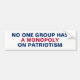 No Group Has a Monopoly on Patriotism Bumper Sticker