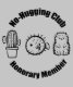 A humourous design features a potted cactus, a pufferfish, and a hedgehog, all surrounded by the text "No-Hugging Club Honorary Member." The playful illustration highlights creatures known for their spiky appearances, implying they might not enjoy hugs.