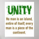 Unity brings people together. Let the world know how you feel with this unity-themed quote: No man is an island, entire of itself, every man is a piece of the continent.