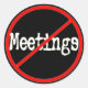 No Meetings sarcastic office humour slogan in distorted letters with a red circle and a line. Don't get trapped in a meeting at work, show them how you really feel with this funny saying.