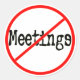 No Meetings sarcastic office humour slogan in distorted letters with a red circle and a line. Don't get trapped in a meeting at work, show them how you really feel with this funny saying.