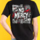 Here's a bold streetwear design featuring the phrase "No Mercy" in jagged, graffiti-style font with blood-red and white paint drips. The dark, cracked concrete wall background, glitch effects, and chaotic brush strokes create a raw, rebellious aesthetic. 💥🛹👕
