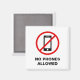 No mobile cell phone allowed forbidden sign symbol Square magnet. Custom warning magnets for safety, security and more. Customisable colours. Handy no cell phone signage for public area, quite space, hotels, motel, bed and breakfast, hospitality business, conference building, home, office space, restaurant, company, school, dorm, university, film studio, school, hospital, care home, bedroom, bathroom, toilet, cloak room, meeting room, editing room etc. Round circle with diagonal stripe. Also handy for tablets. Magnetic caution signs.