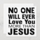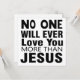 No One Will Ever Love You More Than Jesus, this Christian design features a black and white text message saying, "No one will ever Love you More than Jesus".