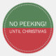No Peeking Until Christmas Green and Red Classic Round Sticker