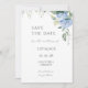 This beautiful floral hydrangea flat wedding save the date card exudes a fresh, elegant and youthful tone. The front of the card includes invitation text, a wedding website address, wedding info as well as a lovely arrangement of blue hydrangeas. The set of fonts are modern and stylish against a white background. Personalise this elegant and stylish wedding invite to make it your very own.