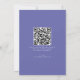 This bright save the date design features a fun digital lavender/very peri colour scheme and a modern QR code option to deliver your upcoming wedding information. This design is fully customisable with your text and URL for the QR code.