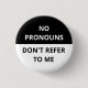 A simple, funny design featuring the text 'no pronouns, don't refer to me', in black and white :)