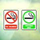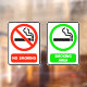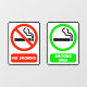 Simply cut this two sign No Smoking and Smoking Area Window Cling in half vertically and use one on the front of your shop for a no smoking zone. Use the designated smoking area cling in the back of the building where employees relax and have a smoke.