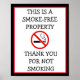 This is a smoke-free property, thank you for not smoking. Anti-smoking sign.