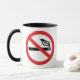 Make an anti smoking statement against the disgusting smell of cigars and cigarettes and the cancer risks and other health hazards of second-hand tobacco smoke with the universal symbol for "No" showing a burning cigarette under a red circle and diagonal line.
