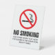 No smoking table top sign with a crossed over cigarette and the text "No smoking" with three lines of custom text below.