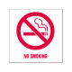 Cigarette icon with red prohibited circle. Custom text "No Smoking"