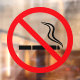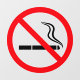 No smoking window cling sign featuring a black cigarette with smoke coming out and a red, crossed over circle around it.