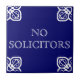 No Solicitors sign. White on blue Spanish tile.