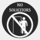 Non- weatherproof. (See weatherproof sticker below). No Solicitors Sticker in Bold black and white graphic. Use on covered door, apartments, interior office doors.
