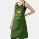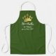 Stylish FOREST GREEN Apron showing faux gold crown and inspirational quote that says NO STRESS WITH THIS CHEF. The placeholder name and text are CUSTOMIZABLE, so you can add your name and replace the text with your own message, such as a company strapline. The crown is also CUSTOMIZABLE, so you can replace with your photo or business logo. Ideal gift for that special person at Christmas, for Birthdays, and throughout the year. Other colours available.