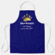 Stylish DARK BLUE Apron showing faux gold crown and inspirational quote that says NO STRESS WITH THIS CHEF. The placeholder name and text are CUSTOMIZABLE, so you can add your name and replace the text with your own message, such as a company strapline. The crown is also CUSTOMIZABLE, so you can replace with your photo or business logo. Ideal gift for that special person at Christmas, for Birthdays, and throughout the year. Other colours available.