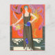 Art Deco style Illustration of a young woman wearing a black evening dress with blue floral accents by George Barbier. George Barbier 1882 - 1932 was one of the great French illustrators of the early 20th century. He is well known for his commissions to design theatre and ballet costumes.