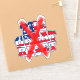 Wording, THE GREAT RESET is filled with an American Flag pattern of red white and blue stars and stripes. Overlaying the wording is a big red "x" to indicate that you do not support this agenda. Available in multiple sizes, and you can easily transfer the design to other products.