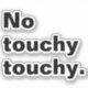 Grab this "No touchy touchy" funny saying introverted tee shirt to show your sense of humour by wearing this basic cool text style. for Black and White Contemporary Art Lovers. I'm sure that it can spark many conversations and will help with breaking the ice. This funny awkward design is a great gift idea for introverted employees, colleagues, coworkers, managers, supervisors, friends, or family, and also makes a great birthday, holiday gift, or Christmas present. (YOU CAN CHANGE AND CUSTOMIZE THIS TEXT DESIGN OR ANY TEXT YOU WANT IN MY STORE!).