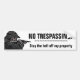 Black and white sketched hunter aims a rifle to fire a warning shot. Or not! Trespassers oughtta consider themselves warned. They['ve been told to stay the hell off your property.