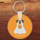 Illustration of a dog dressed as a ghost trick or treating for Halloween.