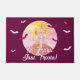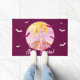 No Tricks Just Treats Spooky Castle Halloween Doormat. Spooky castle on the hill. The design is in purple and orange colours.